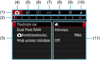 - Στο εξής, οι περιγραφές των λειτουργιών του μενού θα γίνονται με βάση την υπόθεση ότι έχετε πατήσει το πλήκτρο