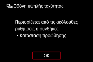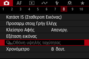 Δεν μπορείτε να ορίσετε αμυδρά στοιχεία μενού. Ένα στοιχείο μενού απενεργοποιείται αν υπερισχύει κάποια άλλη ρύθμιση λειτουργίας.