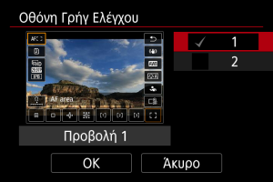 Μπορείτε να αλλάξετε τις προβολές Γρήγορου ελέγχου () που είναι διαθέσιμες κατά την εγγραφή ταινίας.