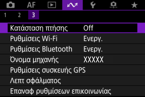 ] ενδέχεται να μην εμφανιστεί κατά τη λήψη στατικών εικόνων, την εγγραφή ταινίας ή την προβολή/αναπαραγωγή, ανάλογα με τις ρυθμίσεις προβολής. Εάν η ένδειξη δεν εμφανίζεται, πατήστε το πλήκτρο