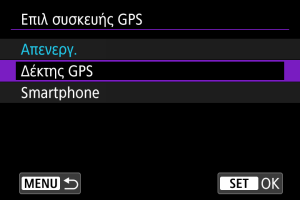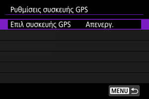 - Για λεπτομέρειες σχετικά με το στοιχείο [Διαμόρφ.], ανατρέξτε στο Εγχειρίδιο οδηγιών του GP-E2.