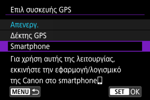 Μπορείτε να προσθέσετε γεωετικέτες στις εικόνες με τον δέκτη GPS GP-E2 (πωλείται χωριστά) ή με smartphone.