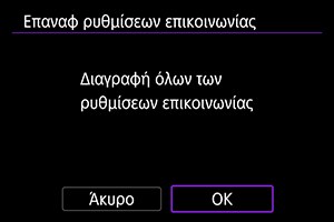 - Μπορείτε να διαγράψετε όλες τις ρυθμίσεις ασύρματης επικοινωνίας ορίζοντας την επιλογή [Ρυθμίσεις επικοινωνίας] για τη ρύθμιση [Άλλες ρυθμίσεις] στο στοιχείο [