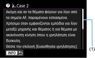 . Πατήστε το ξανά για έξοδο από την οθόνη βοήθειας. Για κύλιση της οθόνης όταν εμφανίζεται μια γραμμή κύλισης (1) στα δεξιά, περιστρέψτε τον επιλογέα