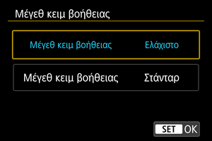 Όταν εμφανίζεται η επιλογή [ Βοήθεια], μπορείτε να εμφανίσετε μια περιγραφή για τη λειτουργία πατώντας το πλήκτρο