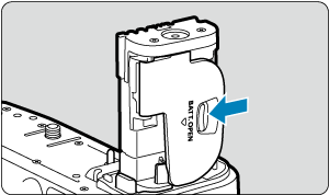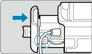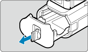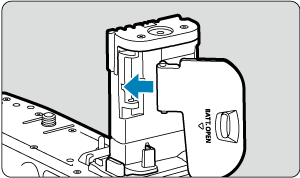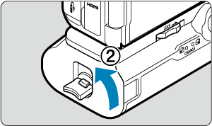 - Τοποθετήστε τον μετατροπέα DC DR-E6 (πωλείται ξεχωριστά) με τον ίδιο τρόπο που τοποθετήσατε τις μπαταρίες.