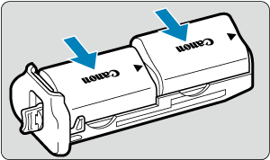 - Οι μπαταρίες LP-E6P, LP-E6NH και LP-E6N μπορούν να φορτίζονται μεμονωμένα ή ανά δύο ταυτόχρονα.