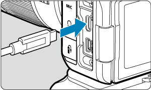 - Δεν είναι δυνατή η φόρτιση της μπαταρίας LP-E6 με αυτόν τον τρόπο. Αν είναι συνδεδεμένη και η μπαταρία LP-E6 και η επαναφορτιζόμενη μπαταρία, δεν θα φορτιστεί καμία τους.