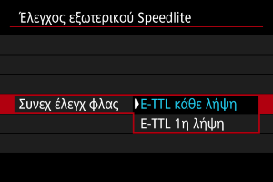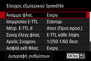 : Έλεγχος εξωτερικού Speedlite]. Οι ρυθμίσεις αυτές γίνονται απευθείας στο Speedlite.