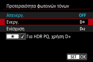 : Προτεραιότητα φωτεινών τόνων] ορίζεται σε [Ενεργ.] και δεν είναι δυνατό να αλλάξει, αφού ορίσετε τη ρύθμιση [