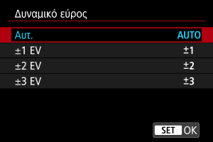 - Αν επιλέξετε [Αυτ.], το δυναμικό εύρος θα καθοριστεί αυτόματα, ανάλογα με το συνολικό τονικό εύρος της εικόνας.