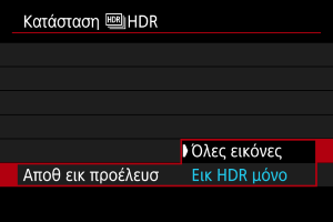 - Για να αποθηκεύσετε μόνο την εικόνα HDR, επιλέξτε [Εικ HDR μόνο].