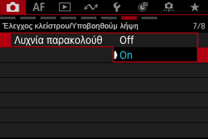 - Εάν έχει οριστεί σε [On], η λυχνία παρακολούθησης ανάβει ή αναβοσβήνει ως εξής.