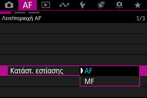 - Μπορείτε επίσης να μεταβείτε από [AF] σε [MF] και το αντίστροφο, όταν εμφανίζεται η οθόνη λήψης, πατώντας το πλήκτρο AF MF.