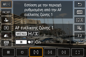Μπορείτε να αλλάξετε το μέγεθος του πλαισίου AF ζώνης που εμφανίζεται για την επιλογή AF ευέλικτης ζώνης 1–3.