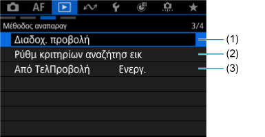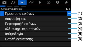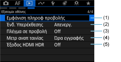 Καρτέλες μενού: Προβολή/αναπαραγωγή