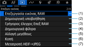 - (3) Γρήγορος έλεγχος Επεξ RAW