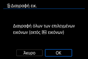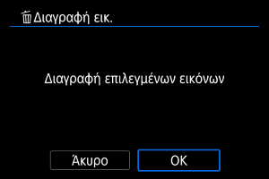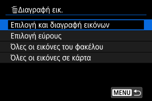 : Διαγραφή εικ.], θα διαγραφούν όλες οι εικόνες του φακέλου ή της κάρτας.