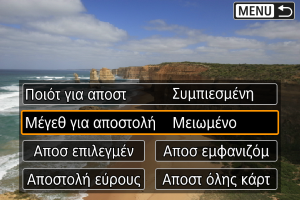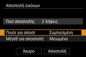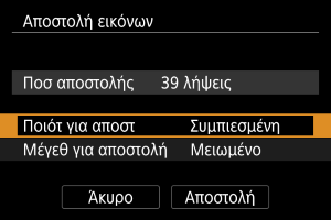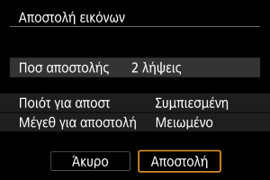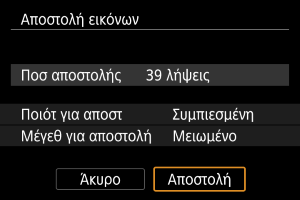 - Κατά την αποστολή πολλών εικόνων, μπορείτε επίσης να αλλάξετε το [Μέγεθ για αποστολή] ανάλογα με τις ανάγκες, στην οθόνη επιβεβαίωσης πριν από την αποστολή.