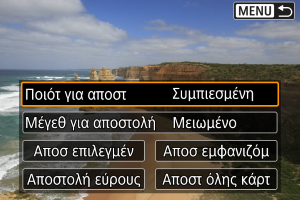 Αποστείλετε όλες τις εικόνες που αντιστοιχούν στους όρους αναζήτησης, οι οποίοι ορίζονται στην επιλογή [: Ρύθμ κριτηρίων αναζήτησ εικ] ταυτόχρονα. Για λεπτομέρειες σχετικά με την επιλογή [