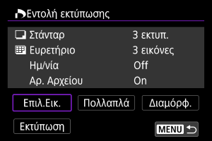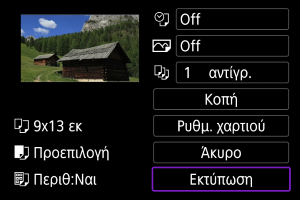 - Η επιλογή [Εκτύπωση] μπορεί να επιλεχθεί μόνο όταν έχει επιλεχθεί εικόνα και ο εκτυπωτής είναι έτοιμος να εκτυπώσει.