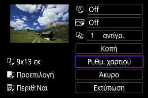 Οθόνη ρυθμίσεων εκτύπωσης