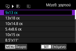 - Πριν από την εκτύπωση, ορίστε το μέγεθος χαρτιού.