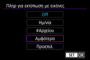 ] Ρύθμιση εκτύπωσης του αριθμού ημερομηνίας/αρχείου