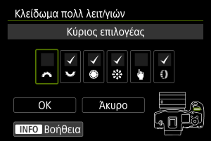 Όταν εμφανίζεται η επιλογή [ Βοήθεια], μπορείτε να εμφανίσετε μια περιγραφή για τη λειτουργία πατώντας το πλήκτρο
