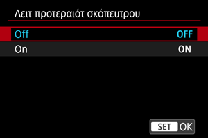 - Όταν είναι ενεργοποιημένη αυτή η δυνατότητα, η λήψη είναι δυνατή μόνο μέσω του σκοπεύτρου.