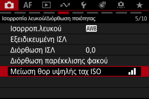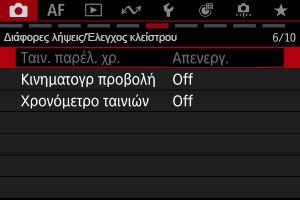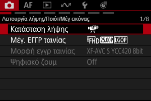 Δεν μπορείτε να ορίσετε αμυδρά στοιχεία μενού. Ένα στοιχείο μενού απενεργοποιείται αν υπερισχύει κάποια άλλη ρύθμιση λειτουργίας.