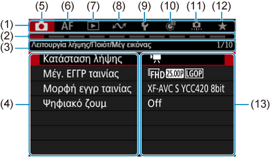 - Στο εξής, οι περιγραφές των λειτουργιών του μενού θα γίνονται με βάση την υπόθεση ότι έχετε πατήσει το πλήκτρο
