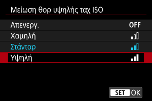 - Η τρέχουσα ρύθμιση υποδεικνύεται με μπλε χρώμα.