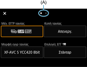 Όπως και στη λήψη στατικών εικόνων, πατήστε το πλήκτρο για να μεταβείτε στην οθόνη Γρήγορου ελέγχου. Με κάθε πάτημα του πλήκτρου