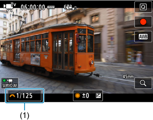 - Οι διαθέσιμες ταχύτητες κλείστρου διαφέρουν ανάλογα με τον ρυθμό καρέ που ορίσατε για το καθορισμένο μέγεθος εγγραφής ταινίας.