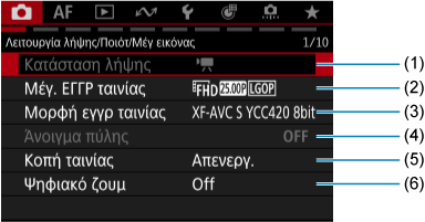 Καρτέλες μενού: Εγγραφή ταινίας