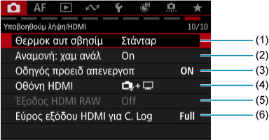 - (6) Εύρος εξόδου HDMI για C. Log