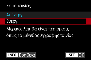 Η εγγραφή ταινιών με φακούς RF-S/EF-S έχει το ίδιο αποτέλεσμα με αυτήν τη δυνατότητα κοπής ταινίας.