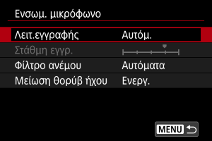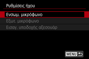 Όταν είναι ρυθμισμένο στο [Ενσωμ. μικρόφωνο]