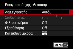 Διαμόρφωση των ρυθμίσεων για τα εξωτερικά μικρόφωνα που χρησιμοποιούν την υποδοχή ΕΙΣΟΔΟΥ εξωτερικού μικροφώνου.