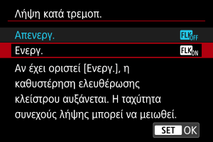 , επιλέγοντας τη ρύθμιση [Λήψη κατά τρεμοπ.] και πατώντας το πλήκτρο