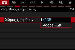 Το εύρος των χρωμάτων που μπορούν να αναπαραχθούν ονομάζεται «χώρος χρωμάτων». Για τυπική λήψη, συνιστάται ο χώρος χρωμάτων sRGB.