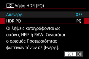 - Η επιλογή [HDR PQ] δεν είναι διαθέσιμη, εάν η ρύθμιση [