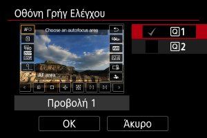 επάνω ή κάτω, για να ορίσετε επιλογές προβολής Γρήγορου ελέγχου