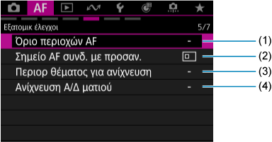 Καρτέλες μενού: AF (Στατικές εικόνες)