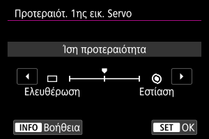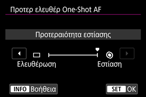 Μπορείτε να καθορίσετε εάν θα θέσετε ως προτεραιότητα την εστίαση ή το χρονόμετρο ελευθέρωσης για One-Shot AF (εκτός της περίπτωσης λήψης με κλείστρο αφής).