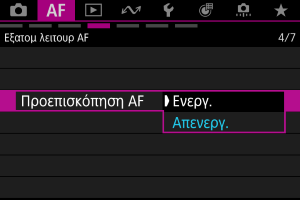 : Προεπισκόπηση AF] έχει οριστεί σε [Απενεργ.]