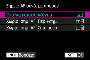 Η λειτουργία είναι χρήσιμη κατά την αυτόματη αλλαγή σε άλλες περιοχές AF ή θέσεις σημείων AF ή πλαίσια AF ζώνης ανάλογα με τον προσανατολισμό της μηχανής.