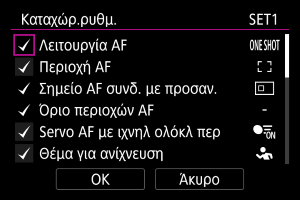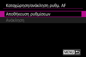 Επιλέξτε τις ρυθμίσεις AF προς καταχώριση.