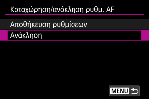 Καταχώριση/ανάκληση ρυθμίσεων σχετικών με AF
